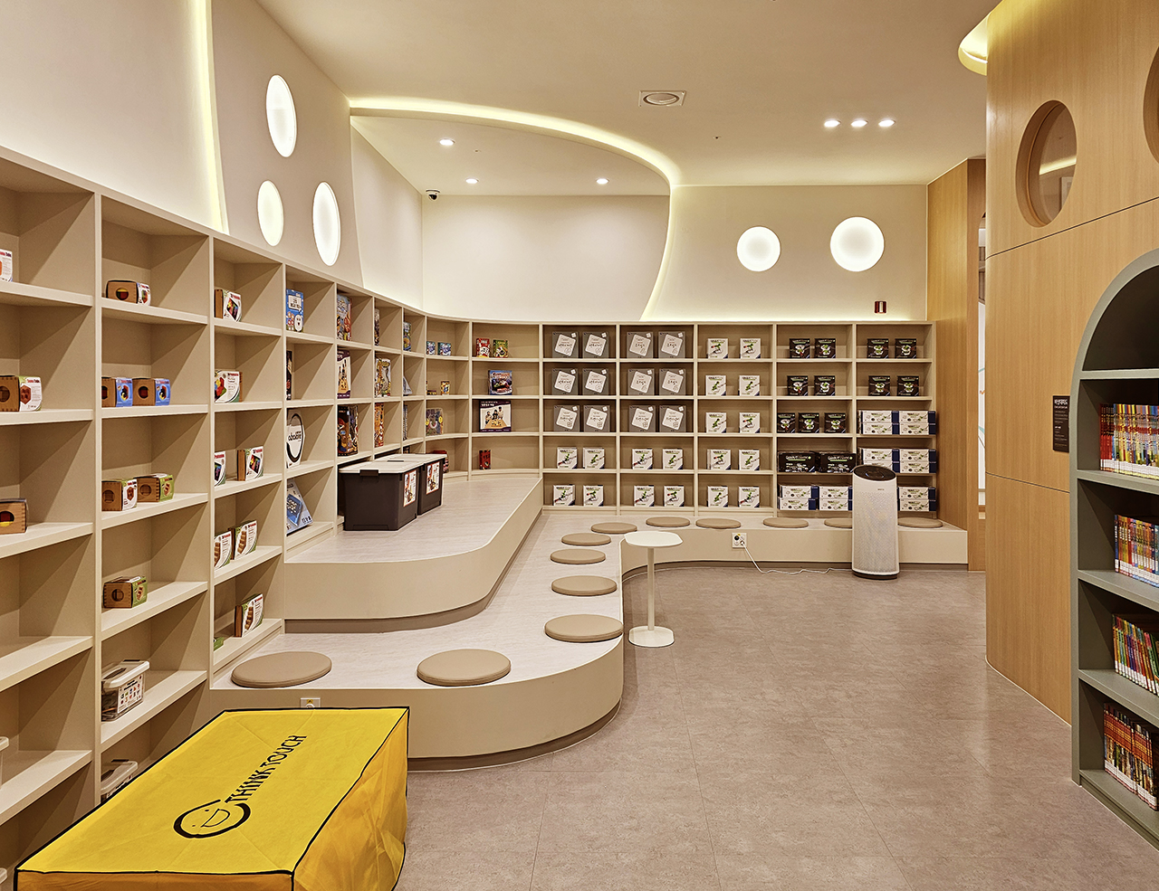 신발을 벗고 이용하는 탈화 공간으로, 외부 공간과 분리되며, 따듯한 분위기와 함께 아이들의 상상력을 자극하는 공간을 구성했습니다.