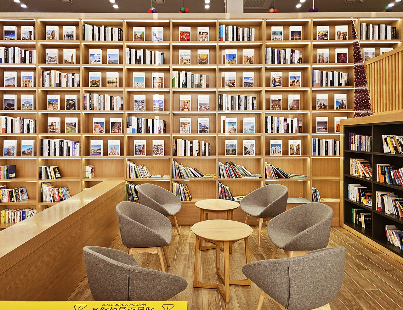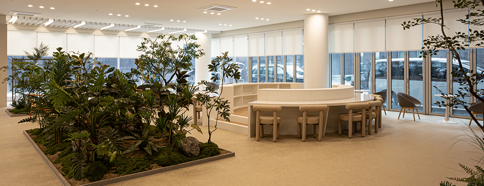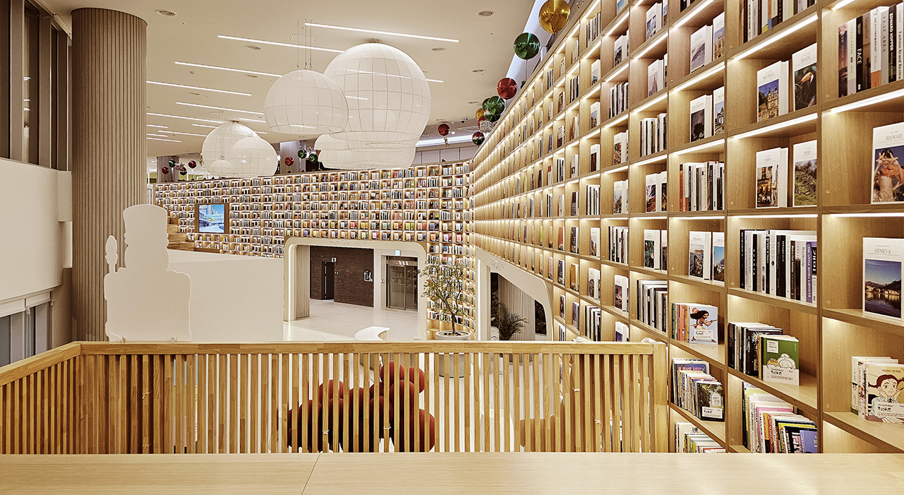 자연을 담은 카페 공간은 주변 공원과 도심 속의 휴식을 제공하고, 로비 메인 홀에는 공간은 압도하는 벽면 디자인 서가의 배치를 통해 인문학 도시 포천의 의미를 강조합니다.