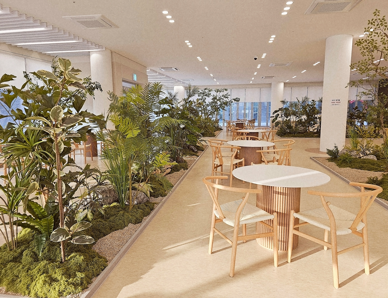 메인 로비와 카페 공간은 1층에 위치하고 있습니다.