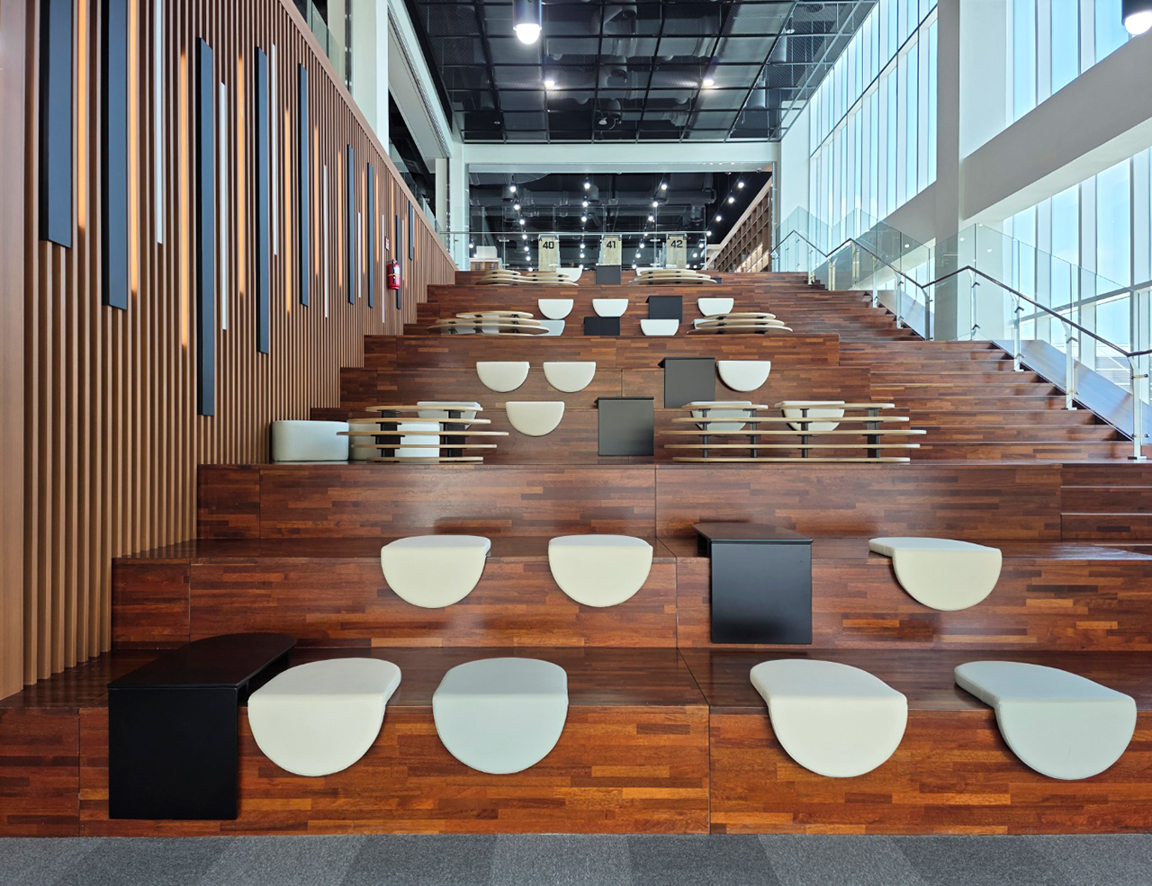 하모니스텝은 2층과 3층을 연결하는 위치에 있으며 도서관 방문객에게 자유로운 독서 공간을 제공합니다.