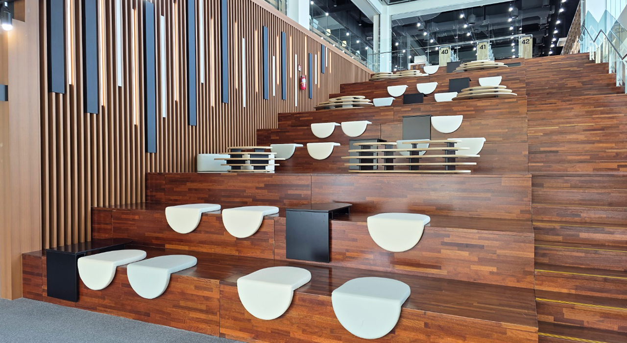 하모니스텝은 2층과 3층을 연결하는 위치에 있으며 도서관 방문객에게 자유로운 독서 공간을 제공합니다.