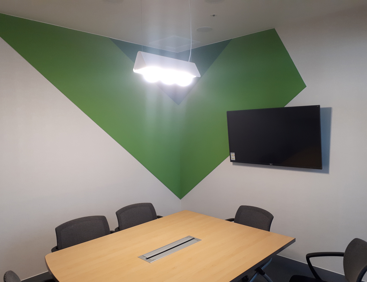 단조로움은 공용 사무 공간에서만 한정되고 아이디어와 창의성을 요하는 회의를 하는 공간들에서만큼은 다양한 색감과 눈에 띄게 배치된 포인트 요소로 작용하는 벽체들과 색다른 조명들이 사용된 공간들에 색다른 재미를 부여합니다.